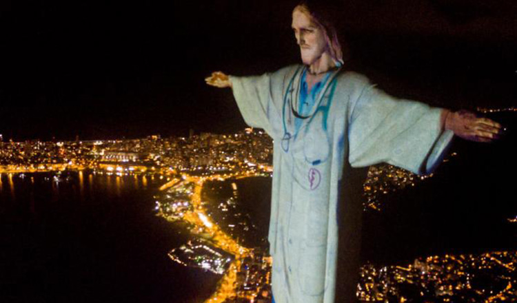 Arhiepiscopul orașului, Dom Orani Tempesta, a oficiat o slujbă la baza statuii în timpul spectacolului de lumini, ocazie cu care a adus și el un omagiu angajaților din sistemul de sănătate.